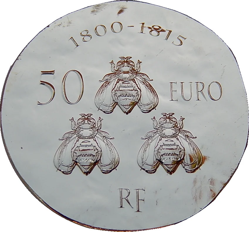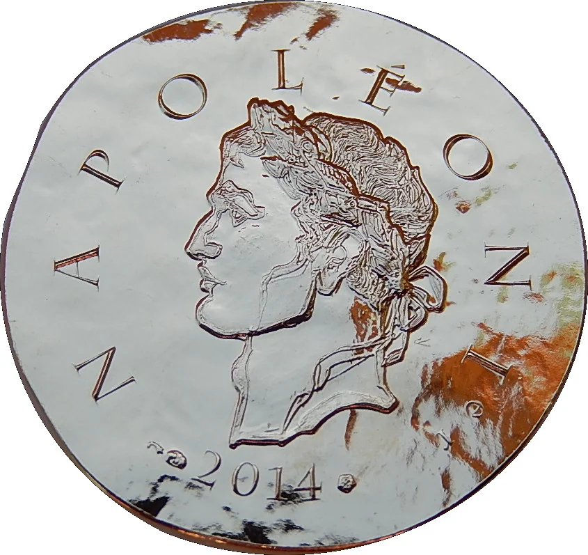 Napoleon I's left profile in a gold laurel wreath, encircled by "NAPOLÉON 1er" and the year.