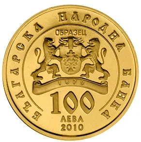 Description: The obverse shows the Bulgarian National Bank logo with "1879" on its ribbon, surrounded by "БЪЛГАРСКА НАРОДНА БАНКА," "100 ЛЕВА," and the issue year.
