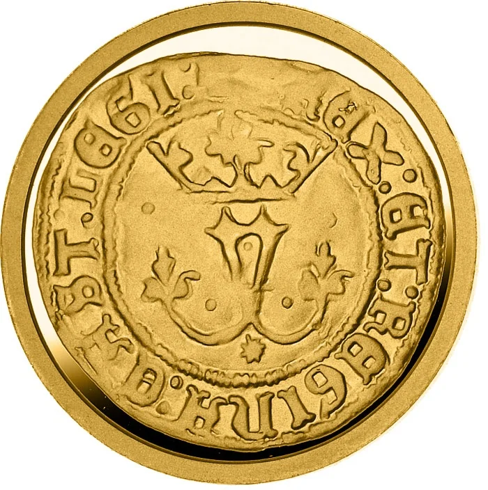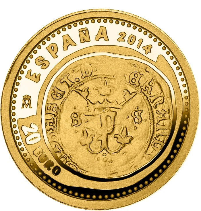 Reverse: Crowned monogram of the Catholic Monarchs' Half Excelente, minted in Seville.