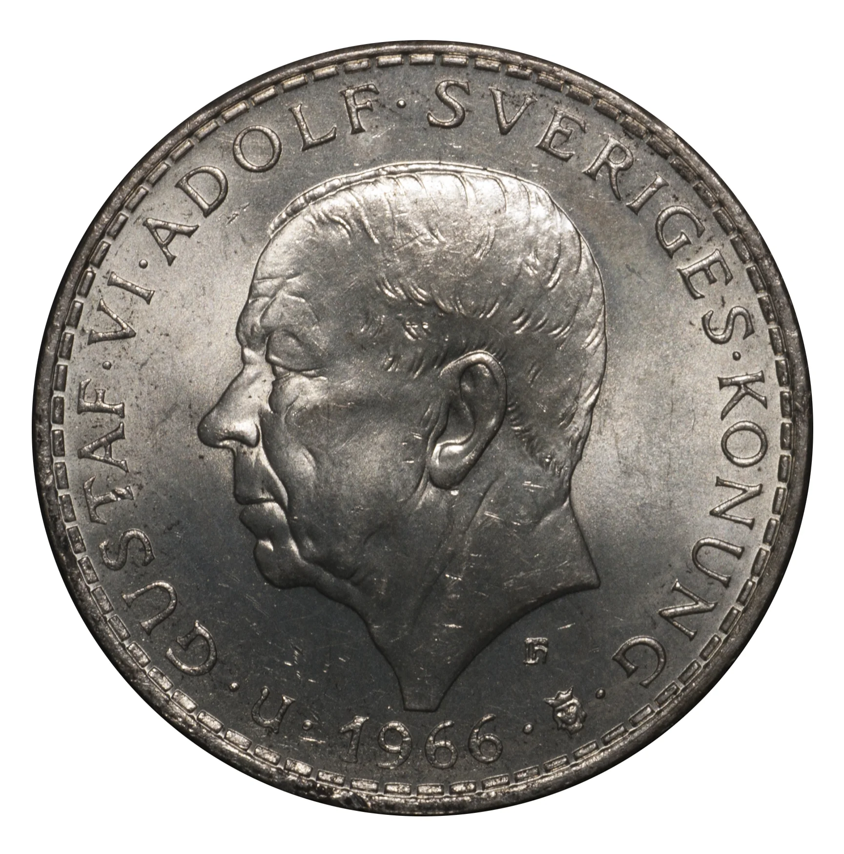 King Gustav VI Adolf facing left, encircled by text. Date below, flanked by the Riksbank Governor's initial and mintmark. Engraver's monogram under the bust.