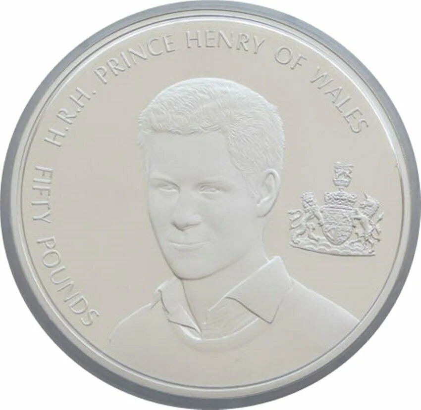 Portrait of Prince Henry of Wales with his Coat of Arms and flanking lettering.