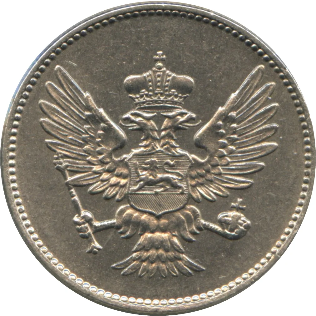 In 1906, Montenegro existed as a sovereign principality (soon to be a kingdom, proclaimed in 1910) with a complex and informal currency system. The state did not mint its own coins or issue its own paper money. Instead, its economy operated on a de facto standard based on foreign silver and gold coins, a situation common in smaller Balkan states of the period. The primary circulating currency was the Austro-Hungarian krone (crown), a reflection of the Habsburg Monarchy's overwhelming economic and political influence in the region. Alongside these, older Ottoman coins like the