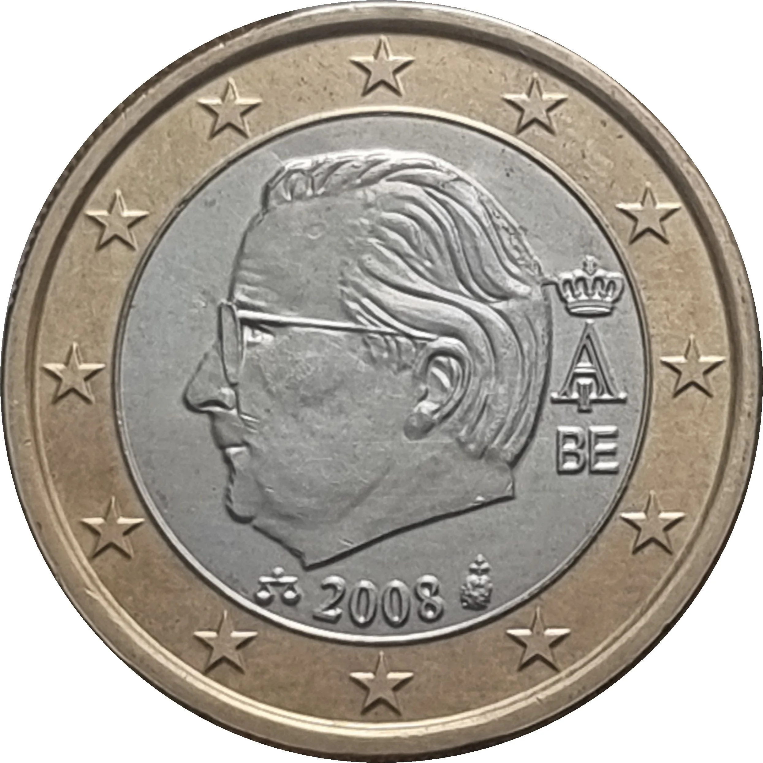 King Albert II's bust beside his monogram, with the date below and the 12 European stars encircling.