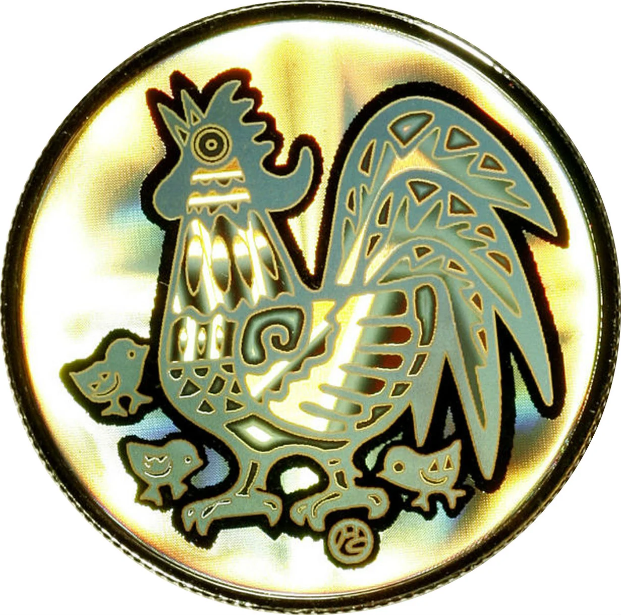 Vibrant holographic rooster.