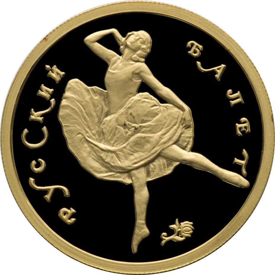 Center: a dancing ballerina. Around the rim: "РУССКИЙ БАЛЕТ" (RUSSIAN BALLET).