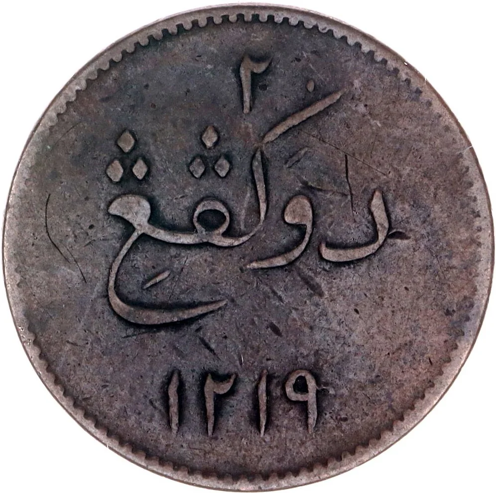 Arabic inscription with denomination above and date below in Eastern Arabic numerals. Beaded border.