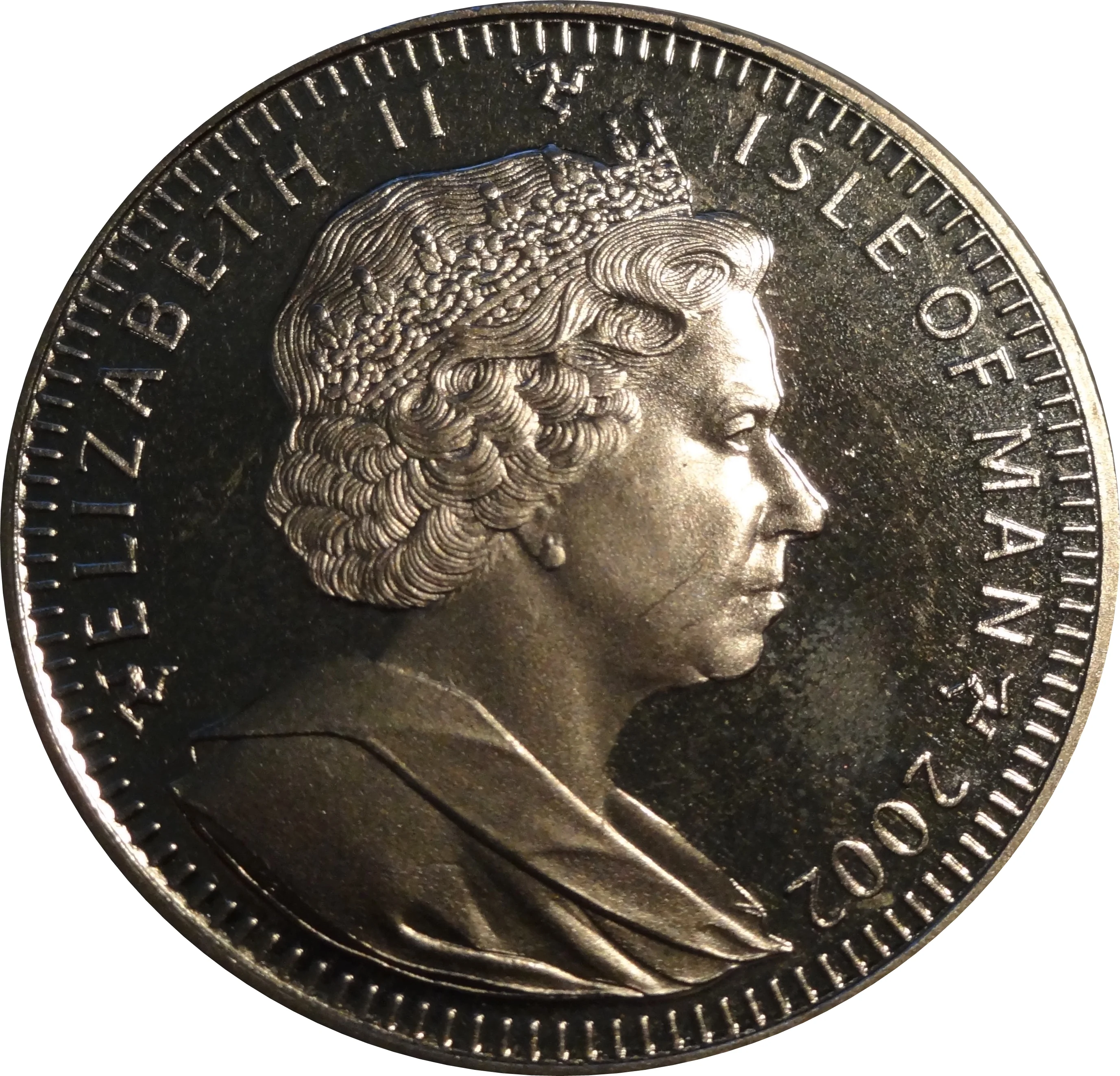 The year 2002 was particularly significant as it marked the culmination of the UK's transition to decimal coinage in its own currency three decades prior, with the withdrawal of the old penny and halfpenny. While the Isle of Man had decimalised in parallel with the UK in 1971, 2002 saw the Island fully align its coinage series with the UK's modern, smaller-sized denominations. More notably, this period was framed by the UK's major economic event of the time: the launch of euro banknotes and coins in the Eurozone on 1 January 2002. This created a direct contrast, highlighting the Isle of Man's deliberate and continued choice to remain firmly within the sterling zone, reflecting its economic and political ties to London rather than Brussels.