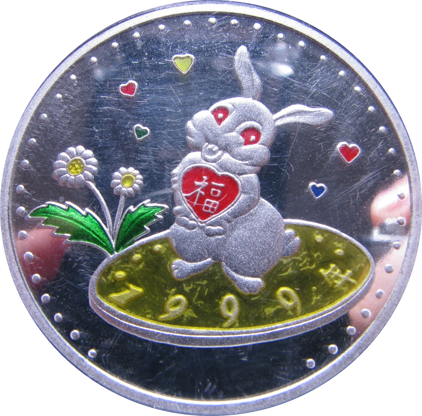 Rabbit and hearts, 1999, multicolored.