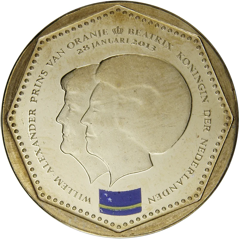 Curaçao coat of arms flanking value.