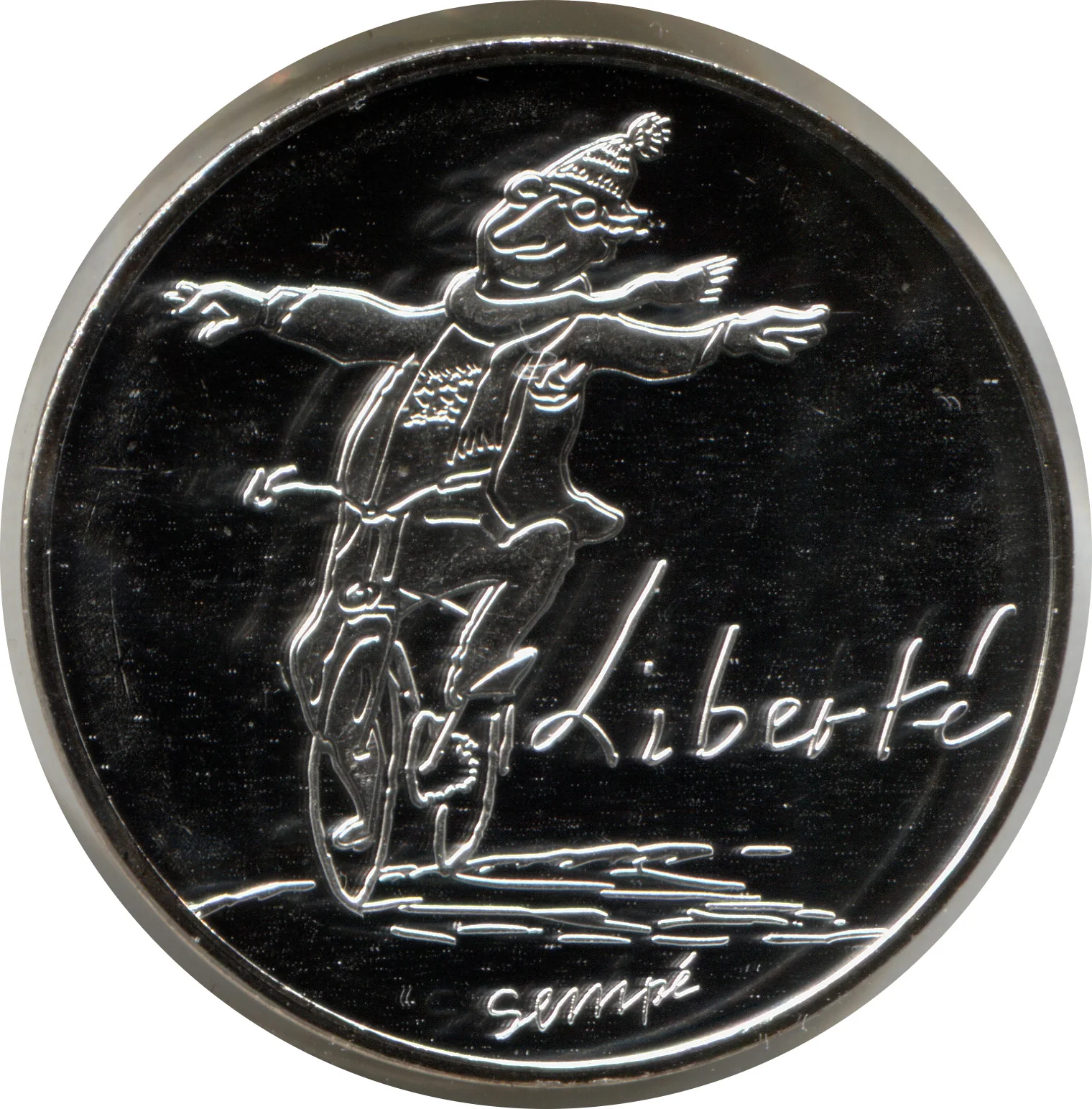 "10 EURO" flanked by laurel and oak branches, encircled by "RÉPUBLIQUE FRANÇAISE," three hexagons, and the issue year.