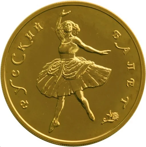 Center: a dancing ballerina. Around the rim: "РУССКИЙ БАЛЕТ" (RUSSIAN BALLET).