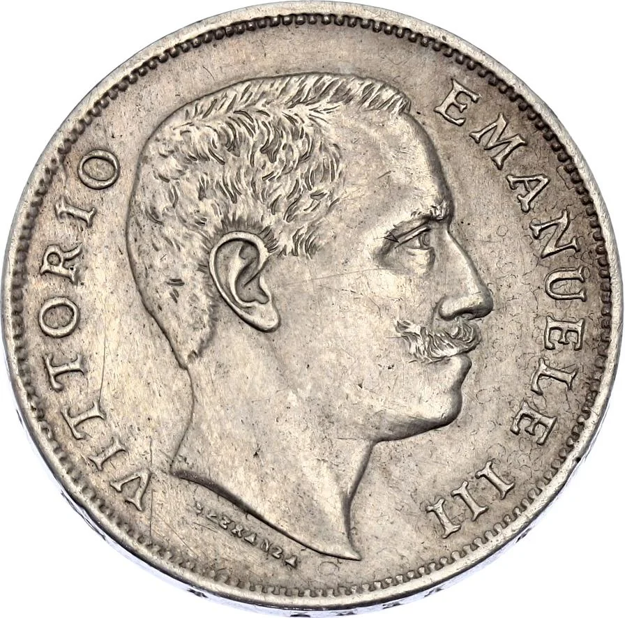 King Vittorio Emanuele III facing right, engraver's name below neck.