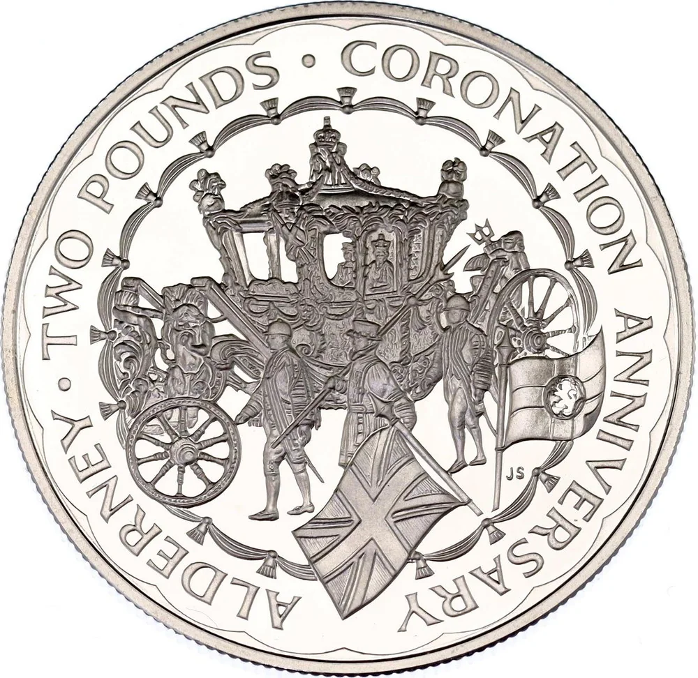 ALDERNEY·TWO POUNDS·CORONATION ANNIVERSARY