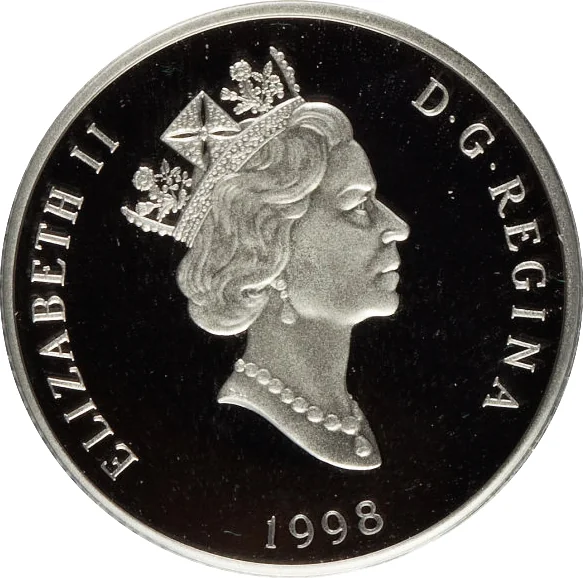 Queen Elizabeth II at 64, wearing the royal diadem and jewels, facing right.
