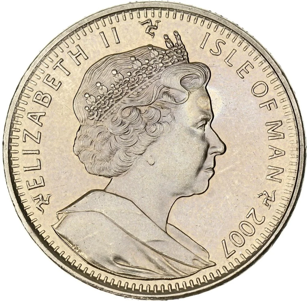In 2007, the Isle of Man's currency situation was defined by its unique political status as a British Crown Dependency. While not part of the United Kingdom, the Island's long-standing monetary policy was to align its currency with that of its largest trading partner. Consequently, the official currency was the Manx pound, which was issued by the Isle of Man Government and maintained a fixed parity at a 1:1 exchange rate with the pound sterling. Sterling notes and coins also circulated freely and were accepted as legal tender alongside distinct Manx-issued notes and coins, which featured local symbols and imagery.