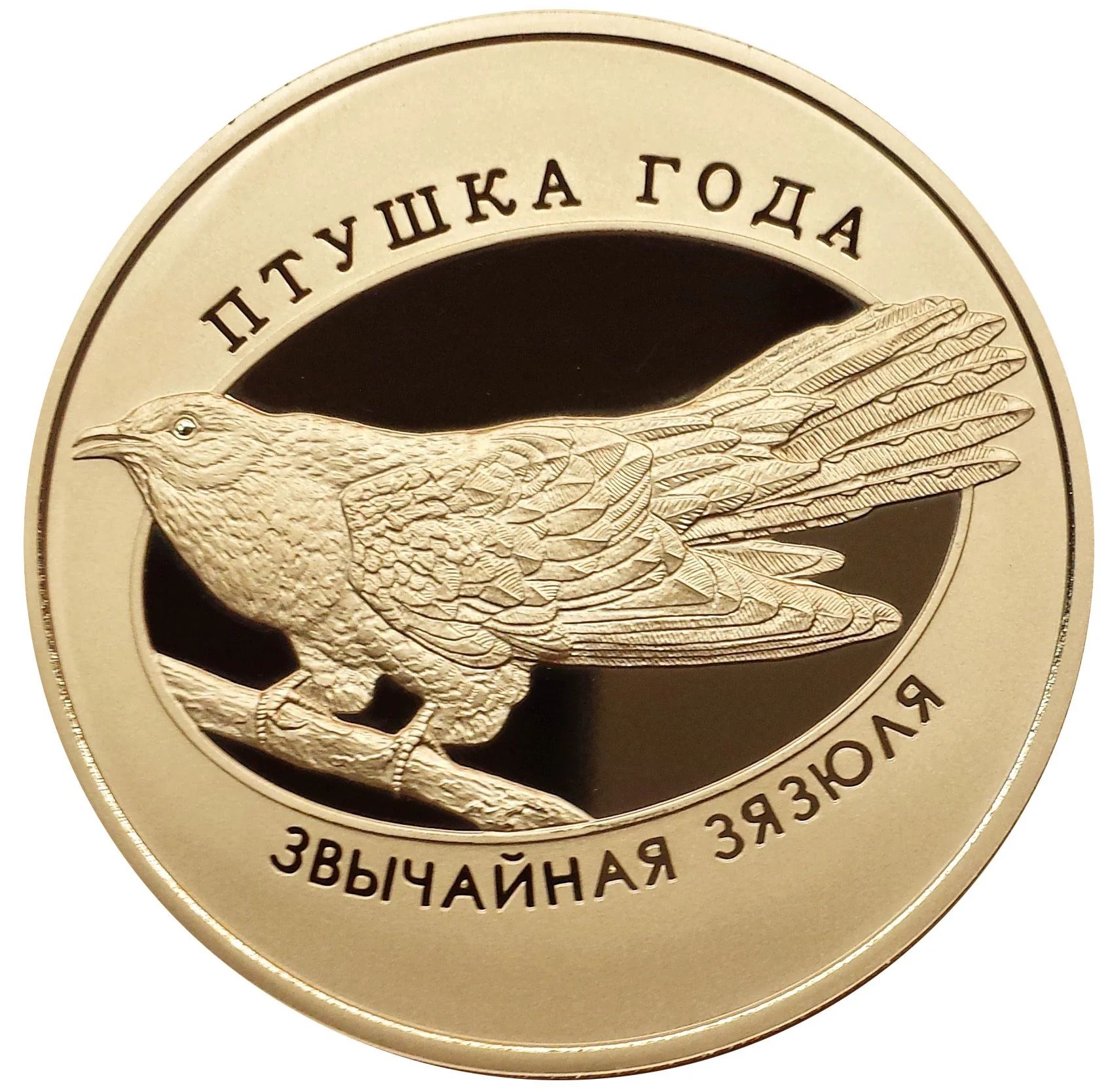 Common cuckoo (2014 Bird of the Year in Belarus) relief image, flanked by its name and the series name.