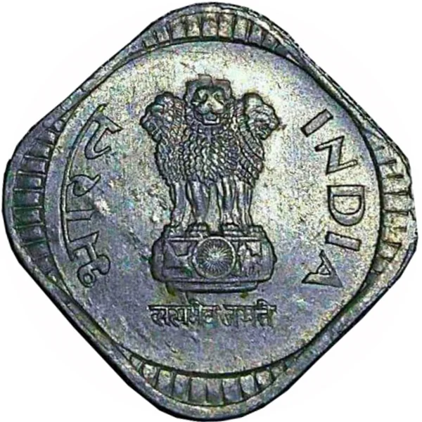 Ashoka lion coin with "Satyamev Jayate" in Nagari. KM#23 (1.52gm); KM#23a is lighter (1.03gm).
