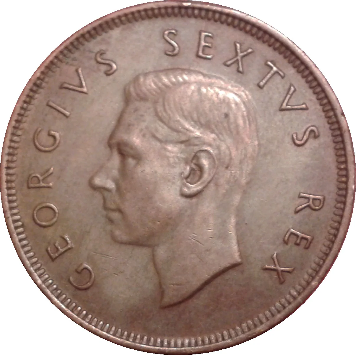 King George VI left-facing portrait, legend encircling, engraver's initials below.