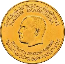 Head of Bourguiba facing left. French and Arabic text encircling.