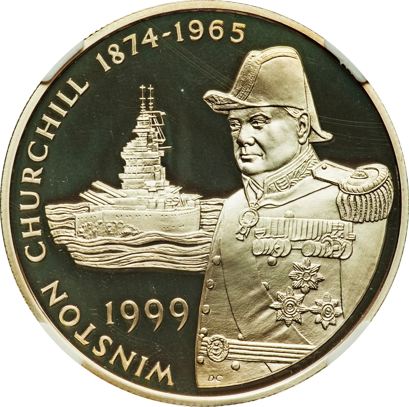 Churchill as Lord Warden of the Cinque Ports, with date and ship at left.