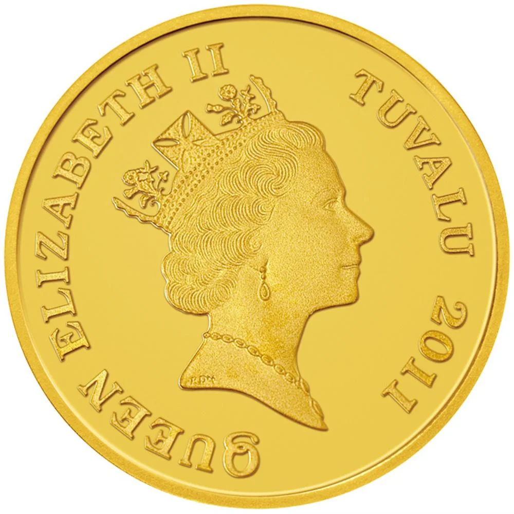 Queen Elizabeth II in profile, wearing the King George IV State Diadem.