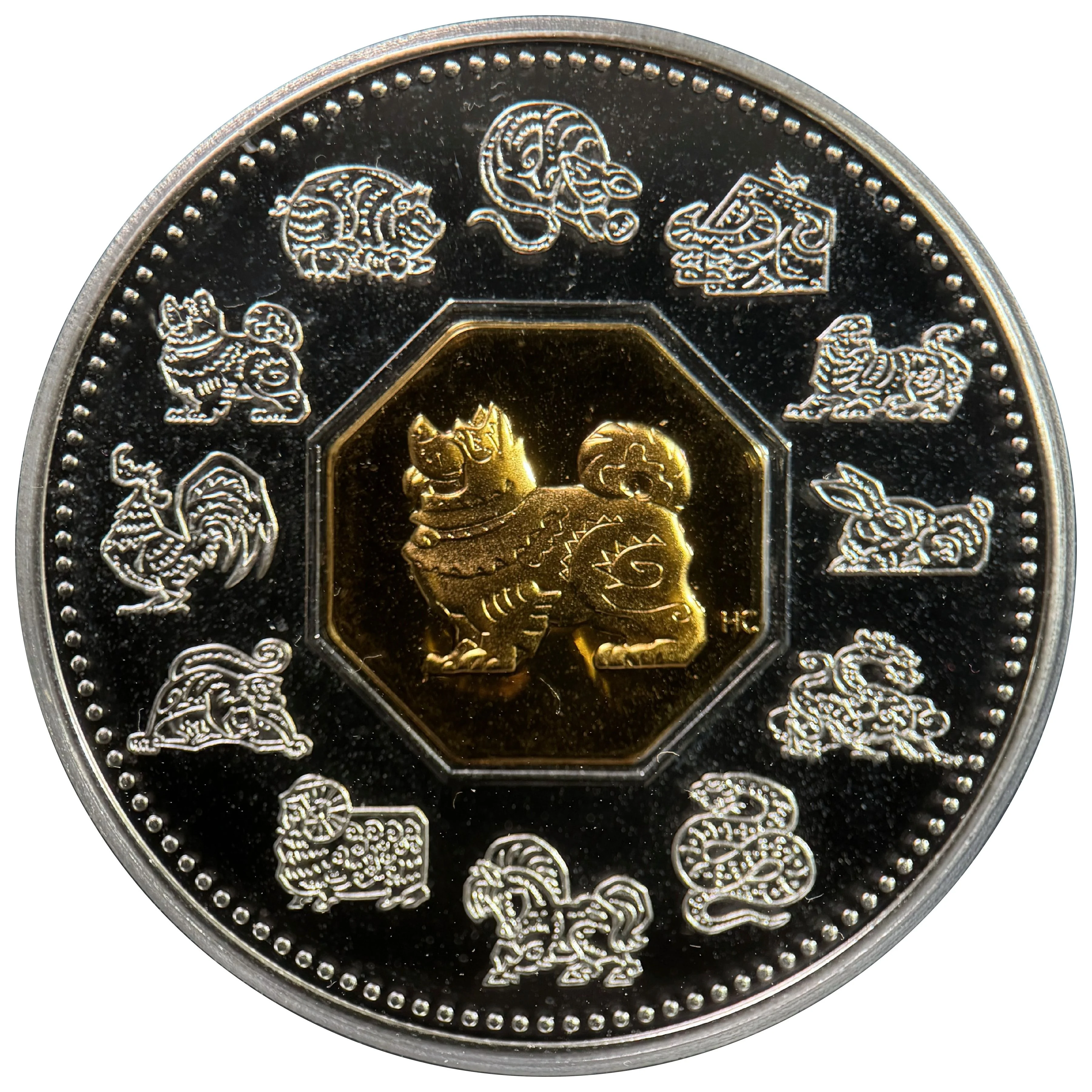 Gold-plated dog among twelve zodiac animals marking the lunar calendar.