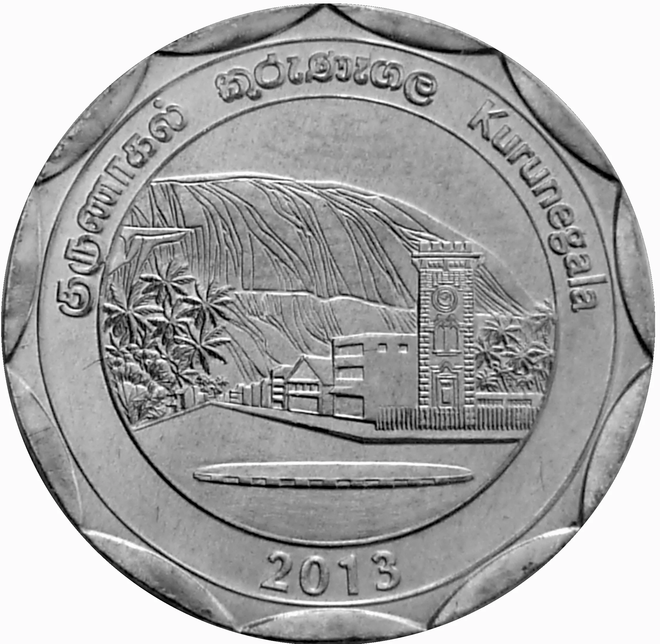 Large central numeral with scripts below. Year at bottom between paddy ears. Country name in scripts above. All within a geometric circular border with a partly raised rim.