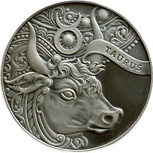 Central: stylized Taurus with inscription "TAURUS"; a zodiac constellation.
