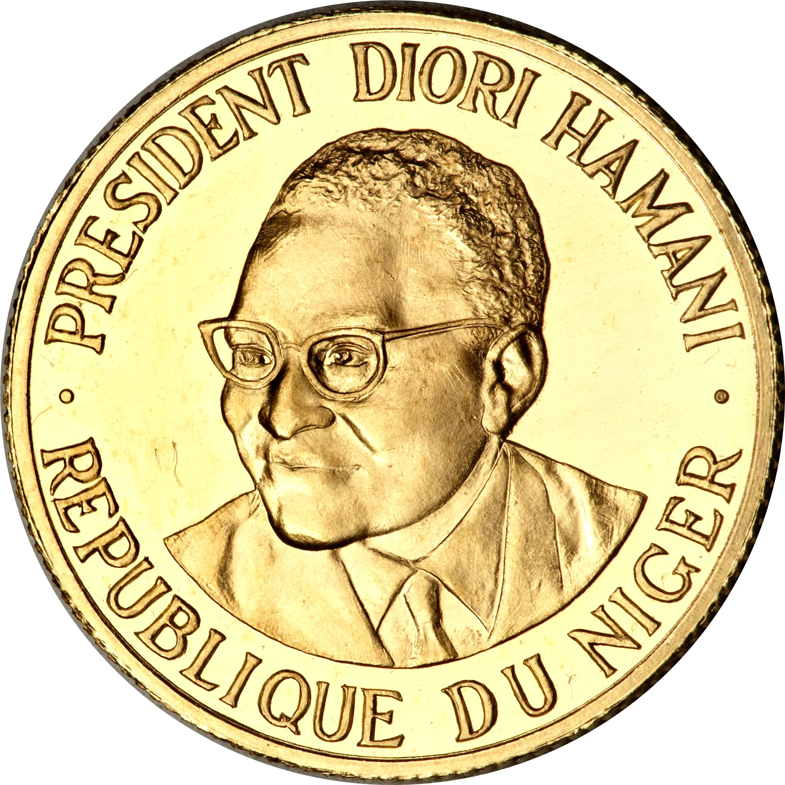 Diori Hamani bust, facing forward, head turned left.