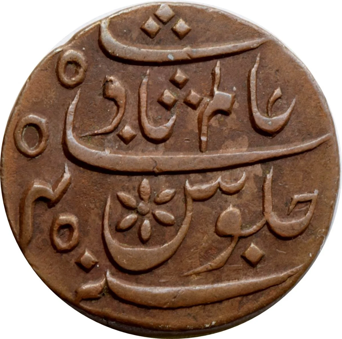 Shah Alam, 45th regnal year, six-petalled rosette in the 'seen' of 'julus'.