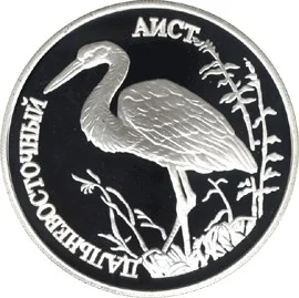 Far Eastern stork with plants. Rim inscription: "ДАЛЬНЕВОСТОЧНЫЙ АИСТ".