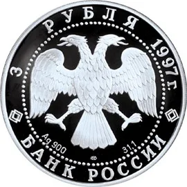 3 RUBLES 1997. Ag 900 MMD 31.1. BANK OF RUSSIA.