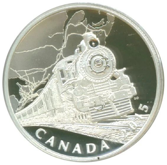 A map of Canada's Grand Trunk and National Transcontinental railways, with a "troop train" pulled by a 4-6-2 "Pacific" locomotive carrying soldiers to the Vancouver training camp.