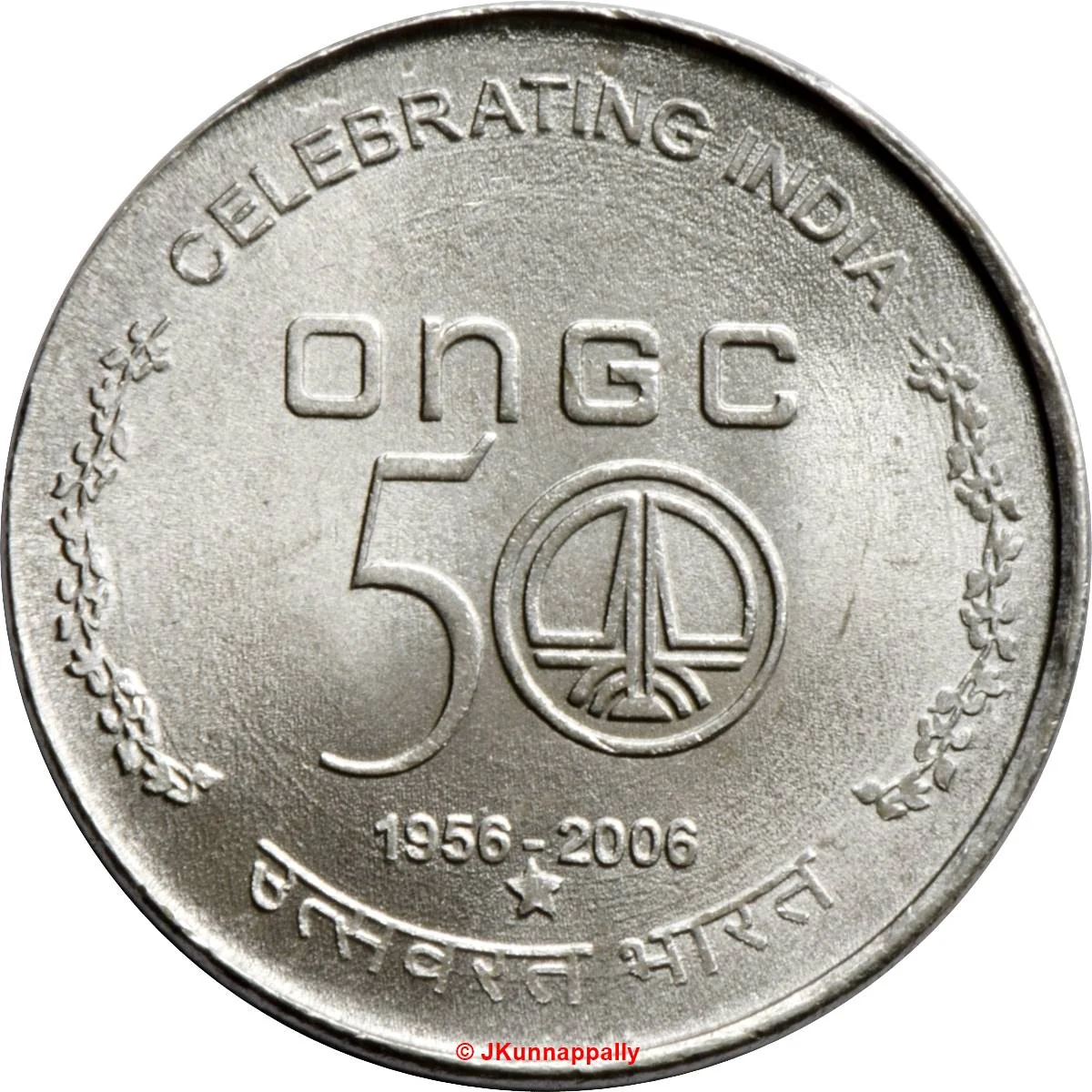 ONGC logo amid sprays. Mintmarks: none = Calcutta; star = Hyderabad.