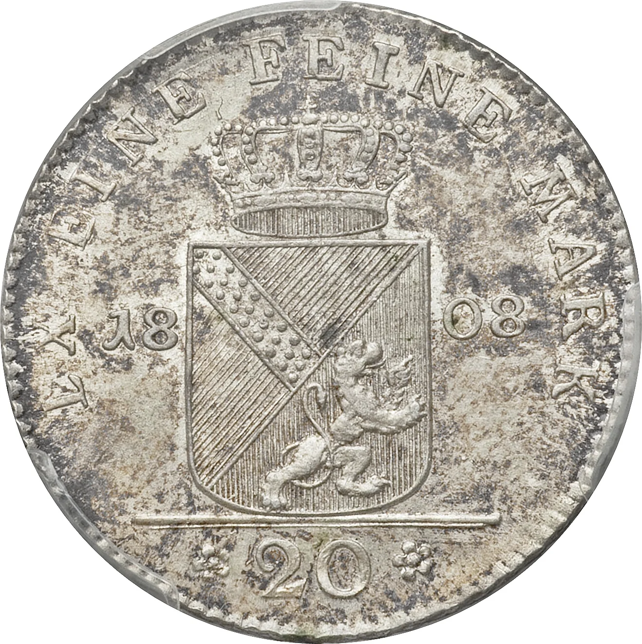 Arms flank date. Denomination above in Mark, below in Kreuzers.