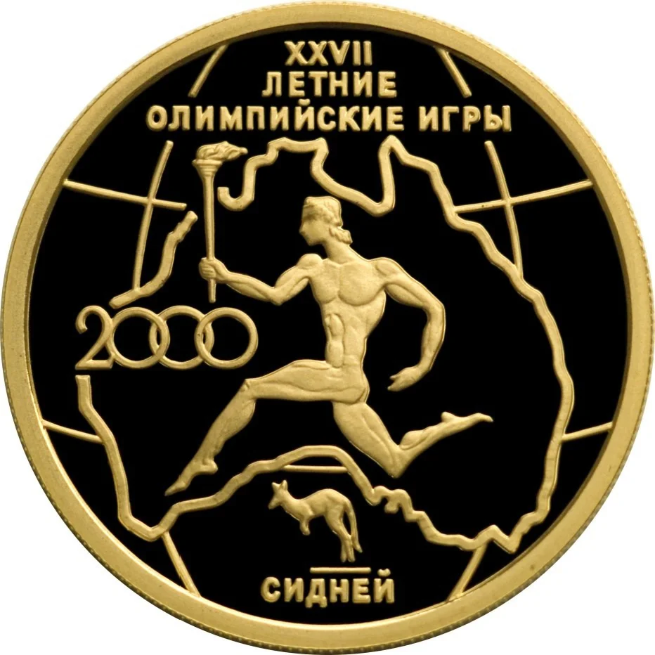 A torch-bearing runner left of "2000", with Australia's outline behind. Top text: "XXVII ЛЕТНИЕ ОЛИМПИЙСКИЕ ИГРЫ". Bottom: a kangaroo and "СИДНЕЙ" separated by a line.