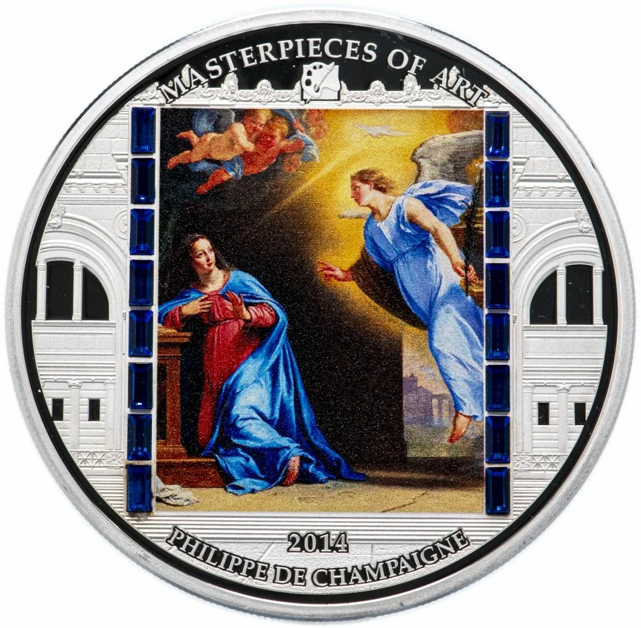 "Annunciation" by Philippe de Champaigne, inset with 16 Swarovski crystals.