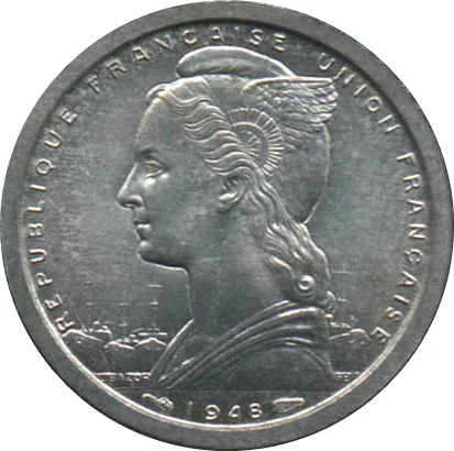CFA franc of French West Africa (CFA XOF), which had been introduced across France's African colonies just two years prior, in 1945. This currency was created to stabilize the monetary environment and replace the pre-war French African franc, with a fixed parity to the French franc (initially 1.7 metropolitan francs = 1 CFA franc, though this was revalued in 1948 to 2 French francs = 1 CFA franc).
