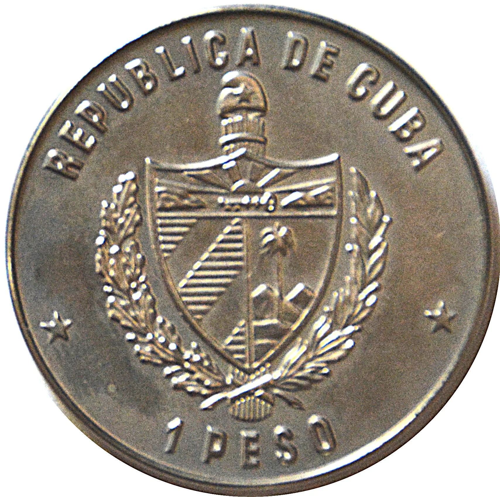 Cuban coat of arms with country name above, face value below, flanked by two five-pointed stars.