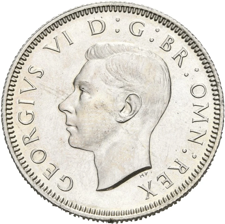 King George VI, uncrowned, left-facing portrait, legend encircling.