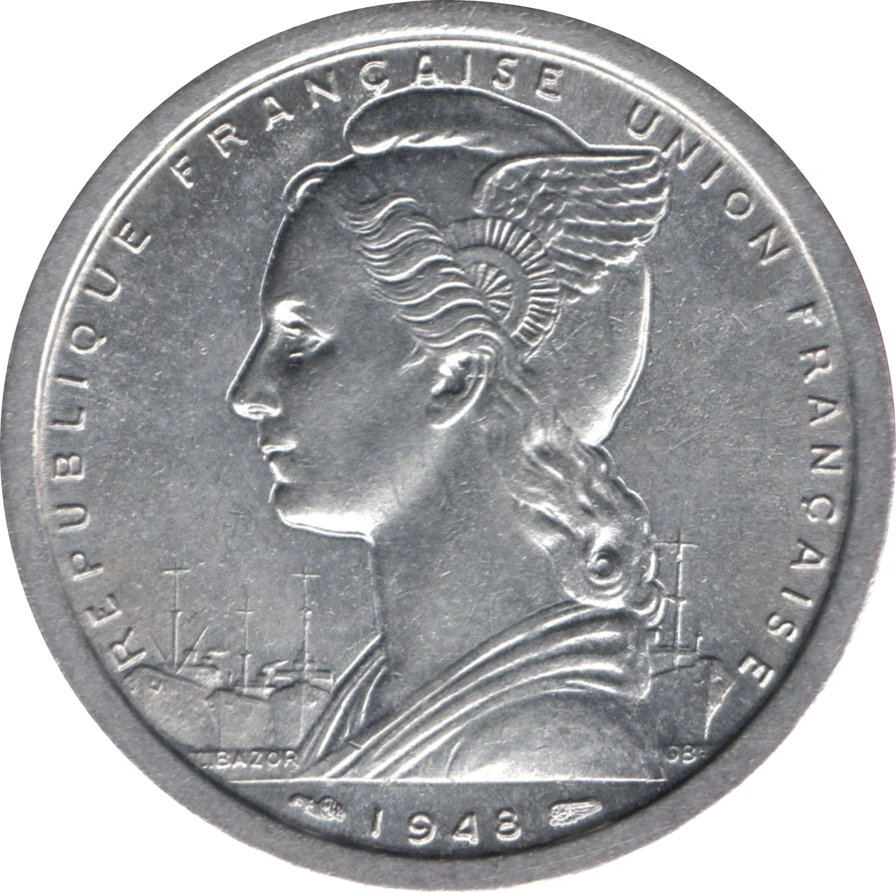CFA franc of French West Africa (CFA XOF), which had been introduced across France's African colonies just two years prior, in 1945. This currency was created to stabilize the monetary environment and replace the pre-war French African franc, with a fixed parity to the French franc (initially 1.7 metropolitan francs = 1 CFA franc, though this was revalued in 1948 to 2 French francs = 1 CFA franc).
