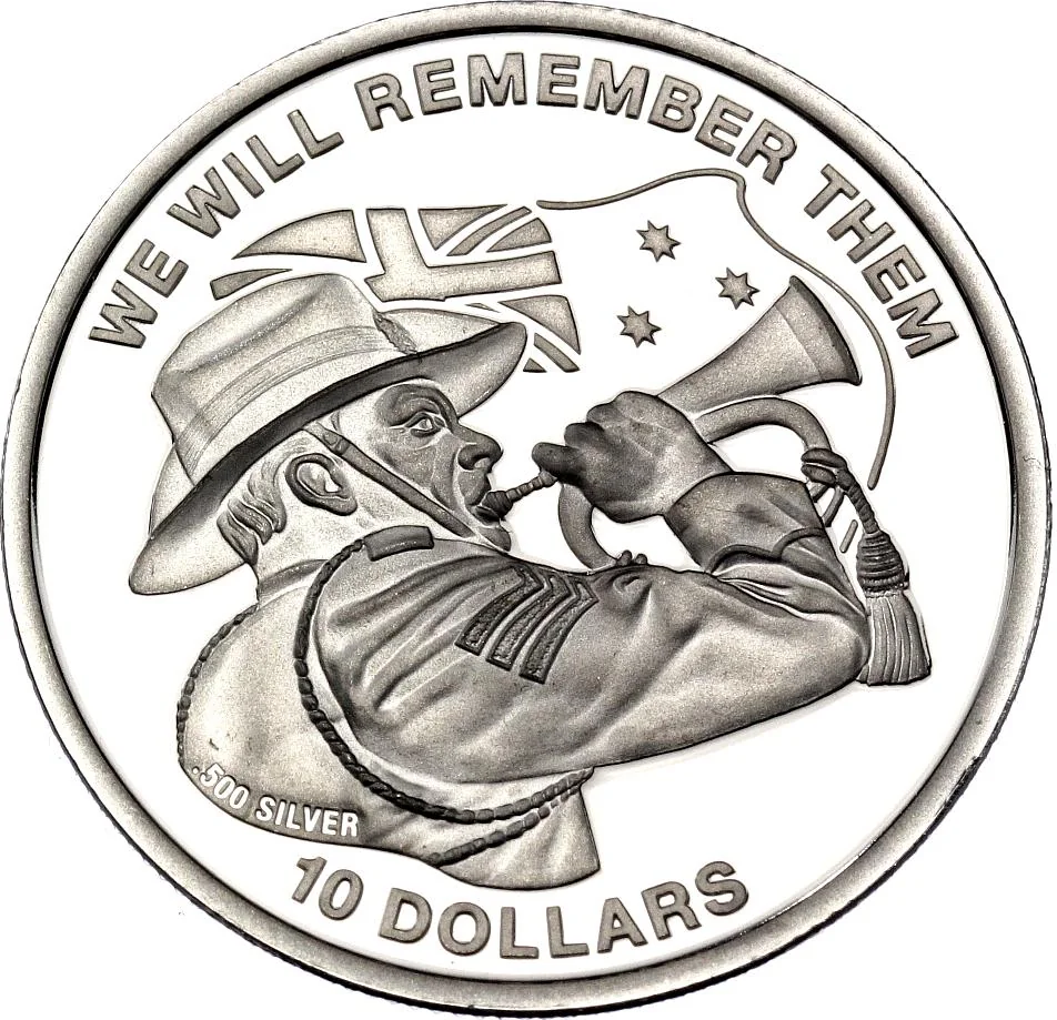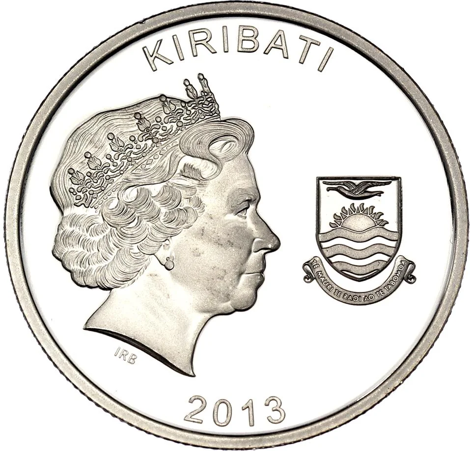 Queen Elizabeth II left, Kiribati coat of arms right.