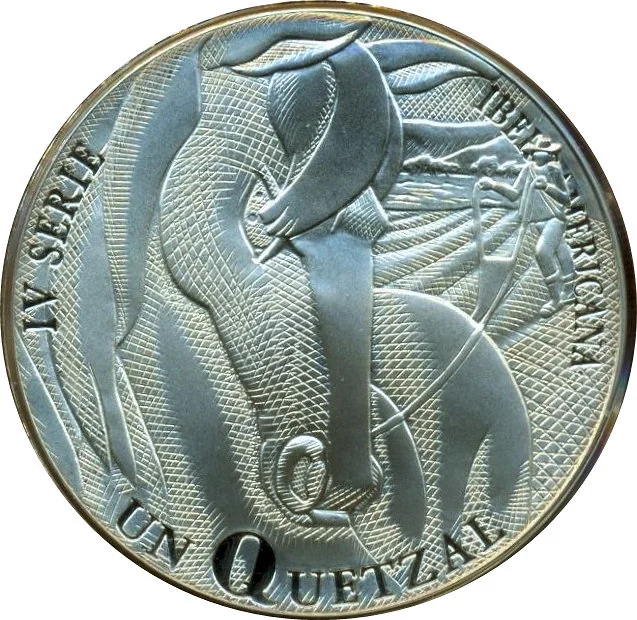 Guatemala's arms with date below, surrounded by all other minting countries for this fourth series.