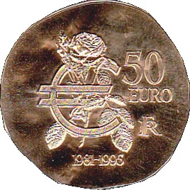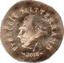 François Mitterrand in left profile, with his name and the year encircling the portrait.