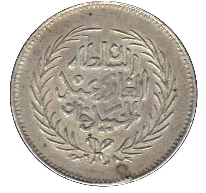 Sultan's name encircled by a wreath.