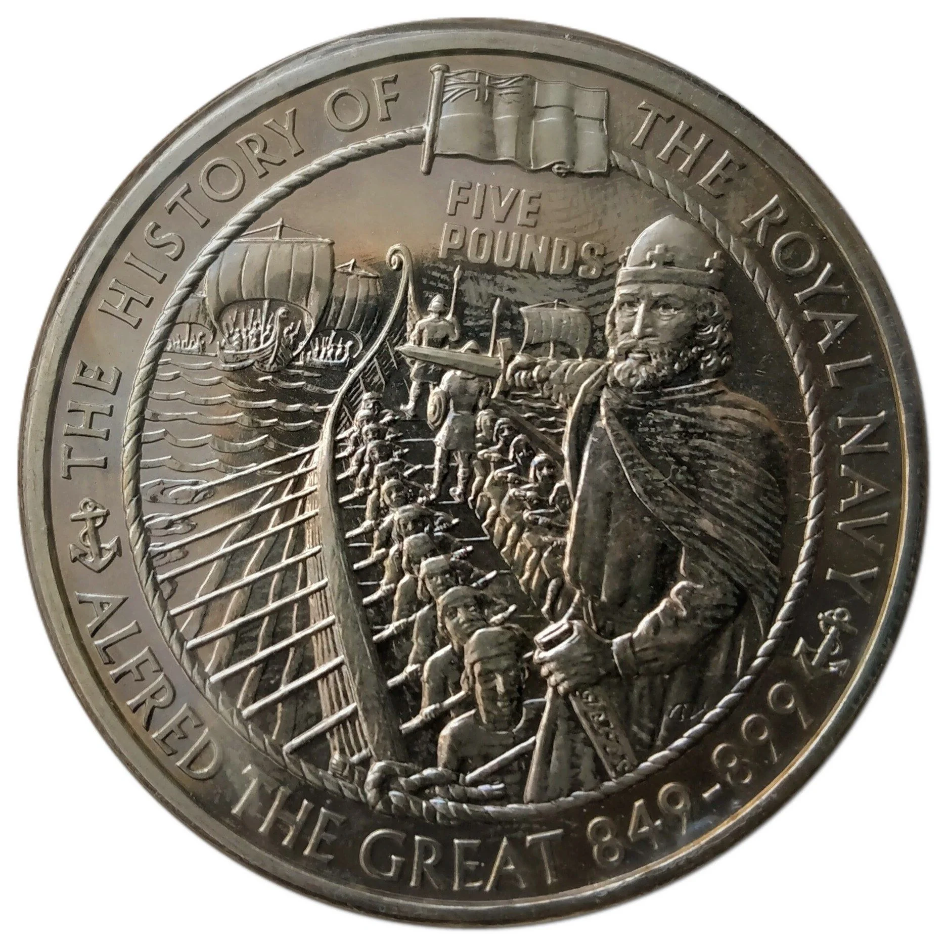 Alfred the Great on a Viking longboat coin.