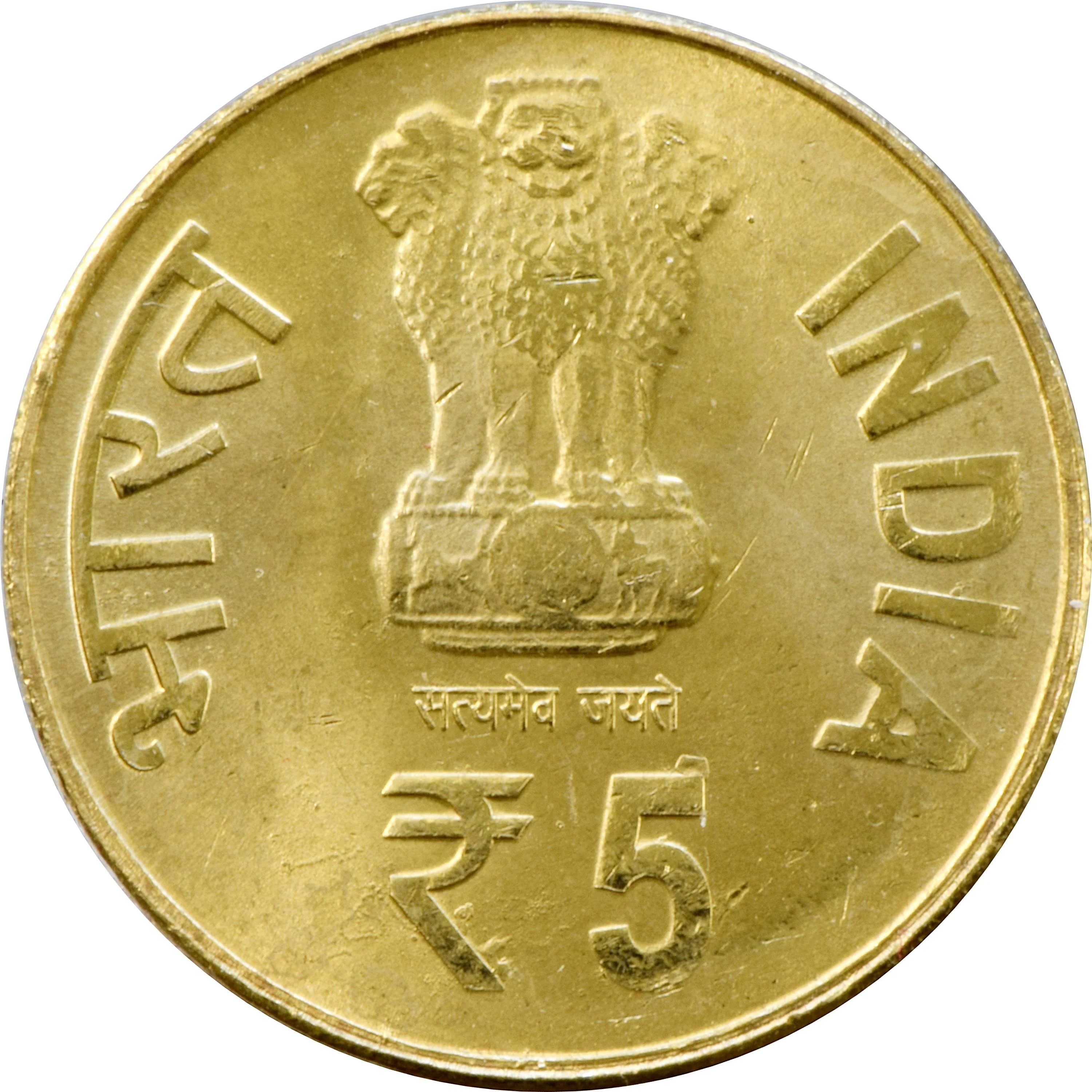 Ashoka Pillar Lion Capital with "Satyamev Jayate" and ₹5 denomination.