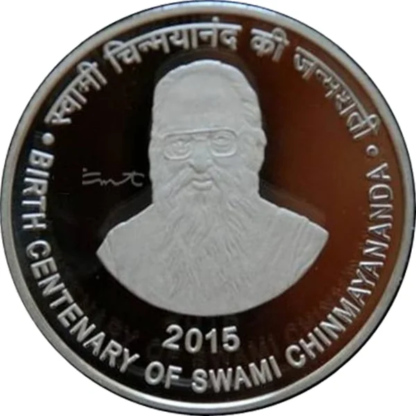 Bust of Swami Chinmayananda with date. Devnagari and English legend encircles.