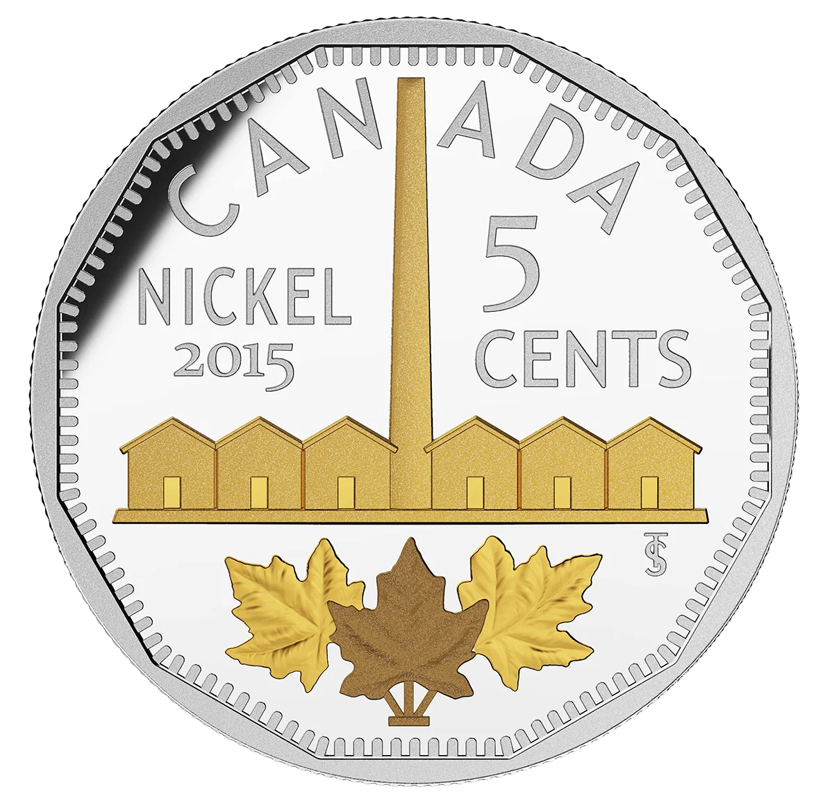 A historic Canadian nickel design, selectively gold-plated.