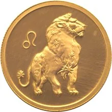 A lion against a starry background, with the Leo zodiac sign to the left.